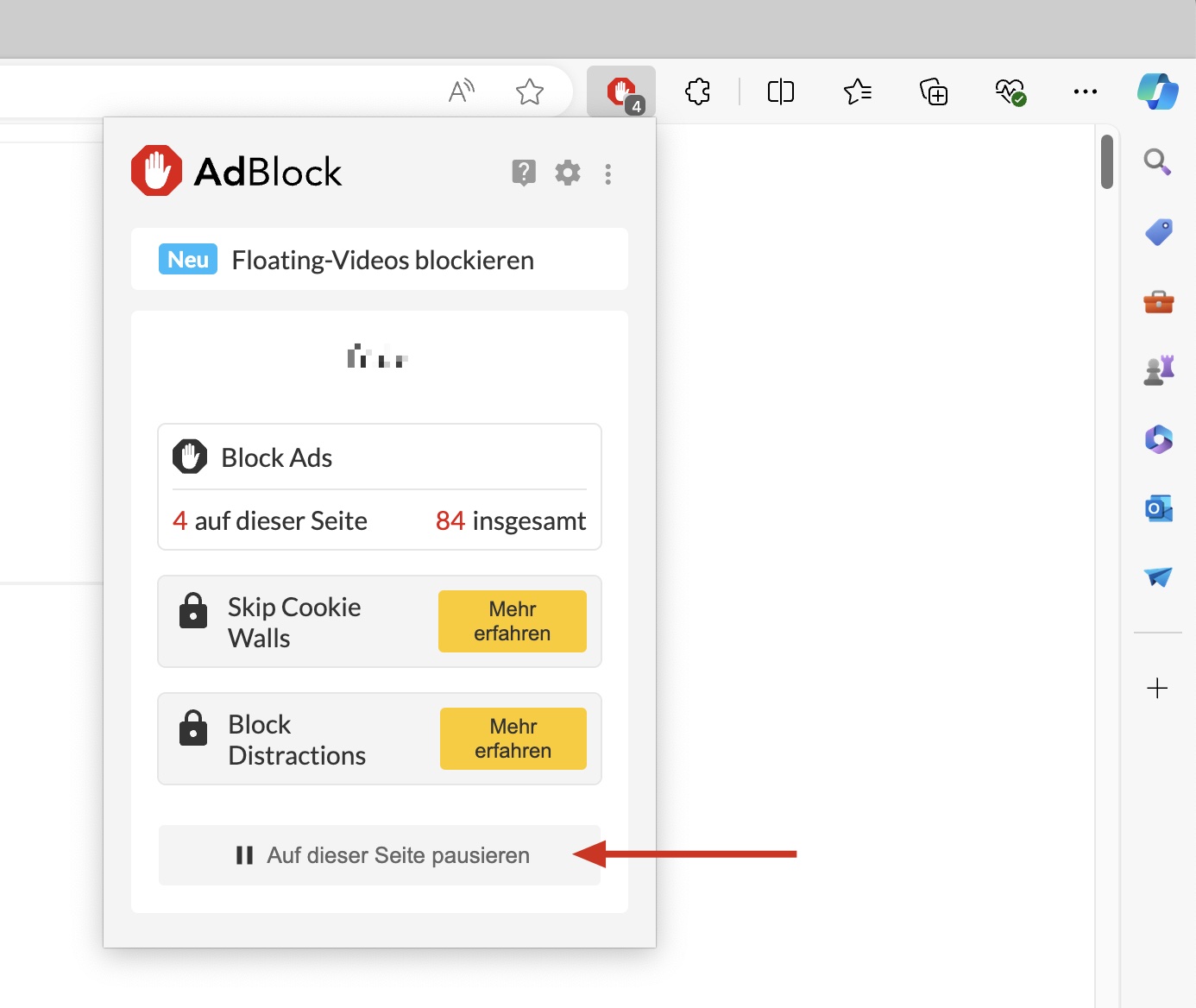 Start your browser. Go to the website for which you want to deactivate the ad blocker. Left-click on the small shield symbol at the top right.