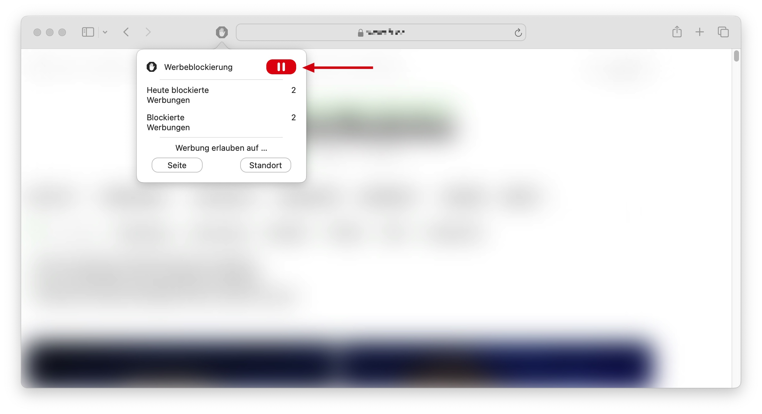 Start your browser. Go to the website for which you want to deactivate the ad blocker. Left-click on the small shield symbol at the top right.