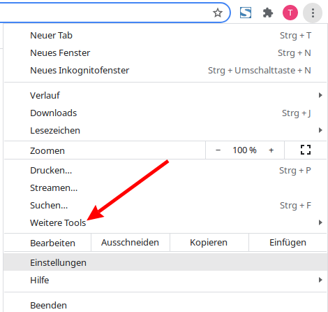 Find the "More tools" item in the menu and go to it with the mouse pointer. The menu window expands.
