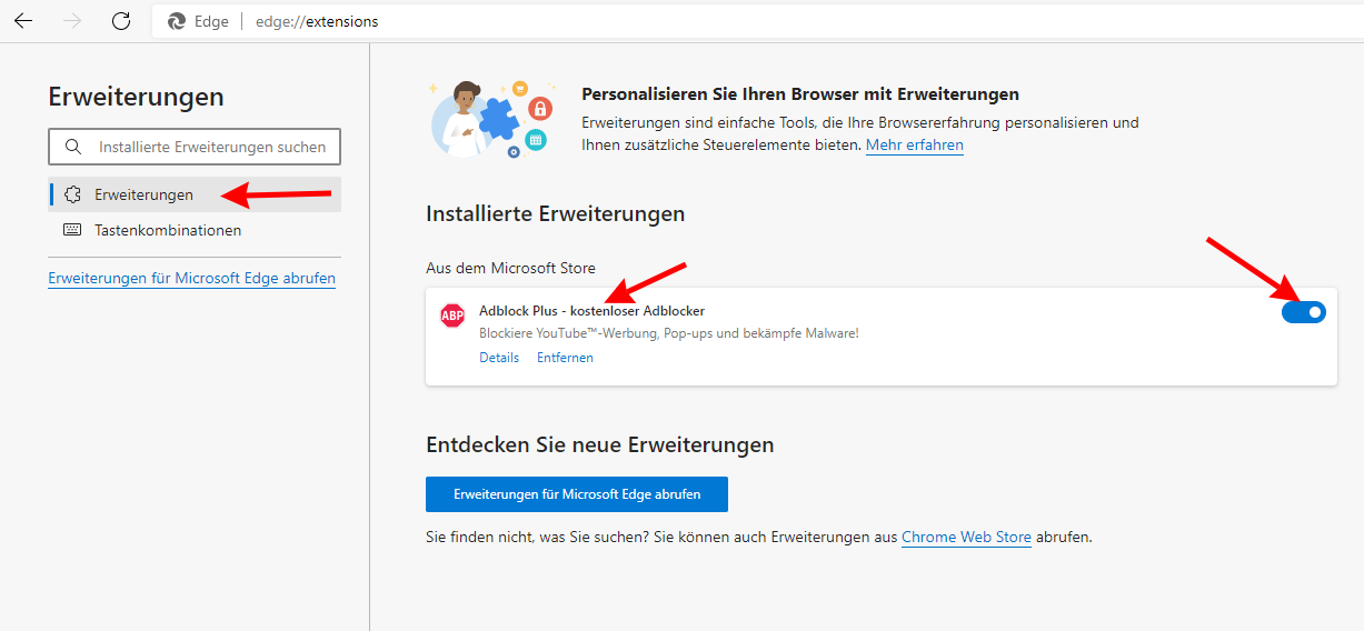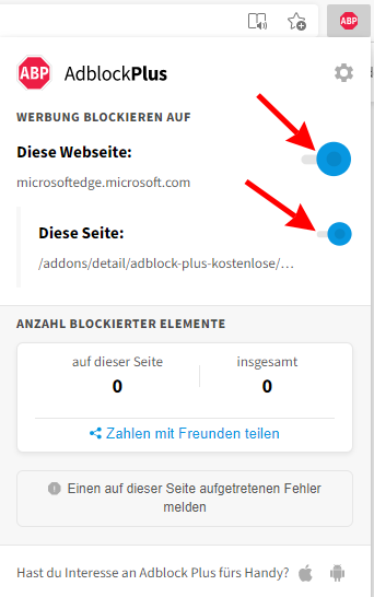 Press with the left mouse button on the corresponding blue bar next to your ad blocker