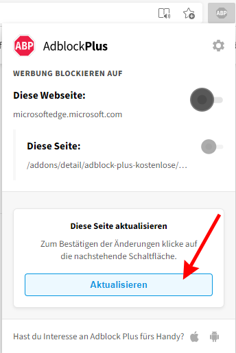 Now refresh your browser so that the change becomes active. To do this, go to the top left of the address bar and click on the small refresh arrow or press the F5 key on your keyboard.