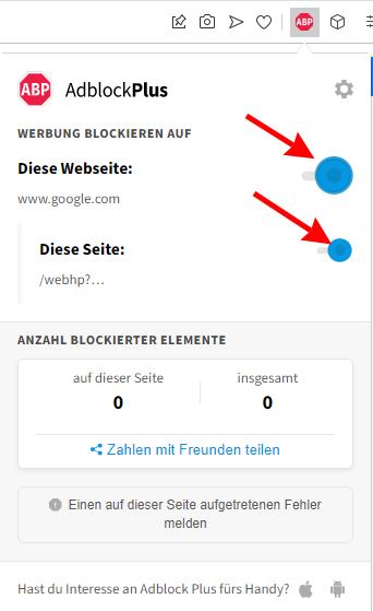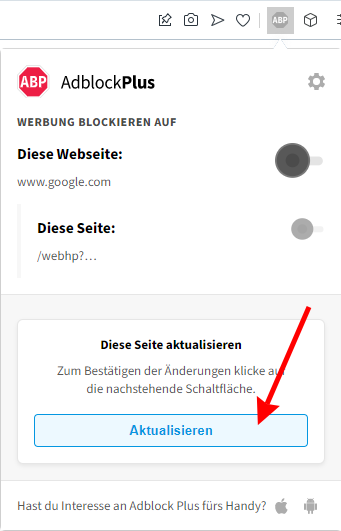 In your browser, go to the small red shield icon in the top right corner. Depending on which ad filter you use, the icon may look different (ASP Octate, Bronze Shield, etc.). Click on it with the left mouse button.