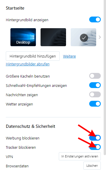 Now a pop-up menu has opened. At the very bottom, select the "Privacy & Security" section. There you will see two blue bars with a white dot.